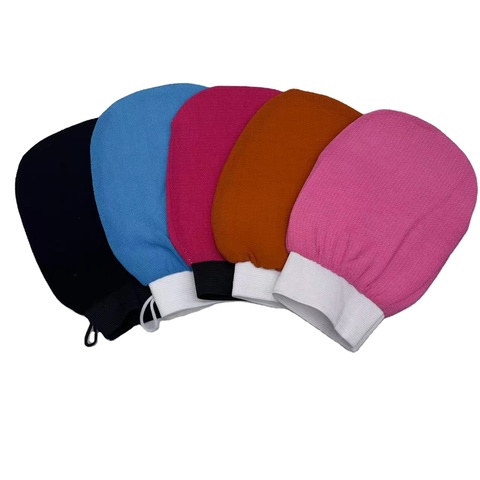 彩色定制标志丝绸去角质淋浴手套个人护理去除死皮沐浴淋浴海绵连指手套